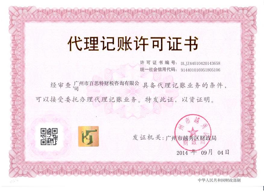 本公司具有代理記賬資質(zhì)。專業(yè)服務(wù),歡迎咨詢!